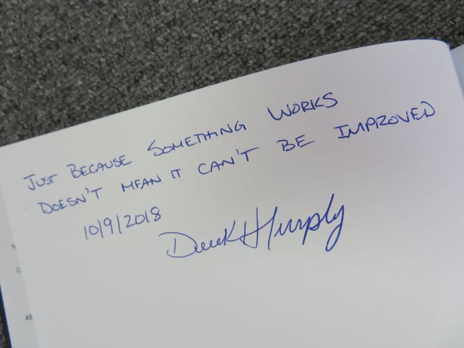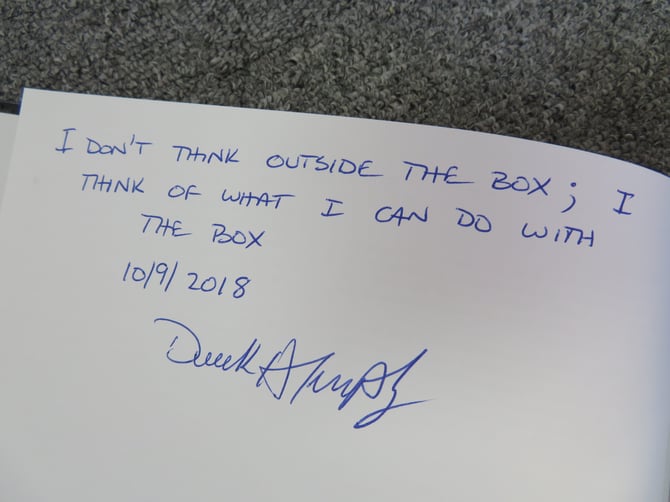 各ノートには、学生達に向けたDerek氏直筆のメッセージとサインが記されています。