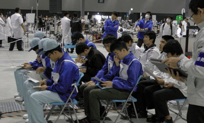 翌日(17日)の閉会式で、成績発表及び表彰が行われました。移動式ロボット部門は、株式会社デンソーチームが金賞、銀賞、アイシン・エィ・ダブリュ株式会社及びアイシン精機株式会社のチームが敢闘賞を受賞しました。選手の皆さん、長時間にわたる競技、お疲れ様でした。(→入賞者一覧はこちら)