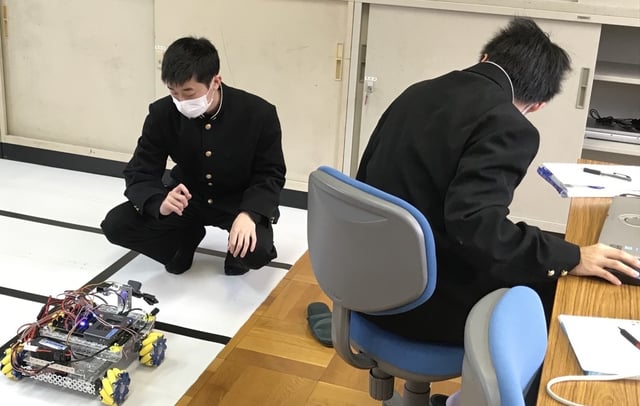展示会・イベント · 2021/03/08 Studica Cup Online準備② 『Studica Cup Online』出場校の岐阜県立大垣工業高校でも準備が進んでいます! 大垣工業高校は、2チーム参加予定です。お邪魔した時には、チームA(2年生)の選手達が競技コートのコースにテープを貼り、走行の練習をしていました。 ロボットの前進、後退、左右の走行に成功。エンコーダを使って、指定した距離を走行することが可能になりました。 いよいよ3月20日の本番に向けて、士気が高まってきました!! 当日が楽しみです。 tagPlaceholderカテゴリ: Worldskills, Studica, Mobile Robotics, NI LabVIEW, StudicaCupOnline