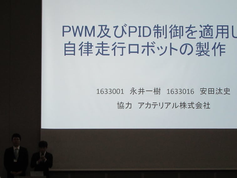 タイトルは、「PWM及びPID制御を適用した自律ロボットの製作」、発表時間は7分、その後質疑応答でした。